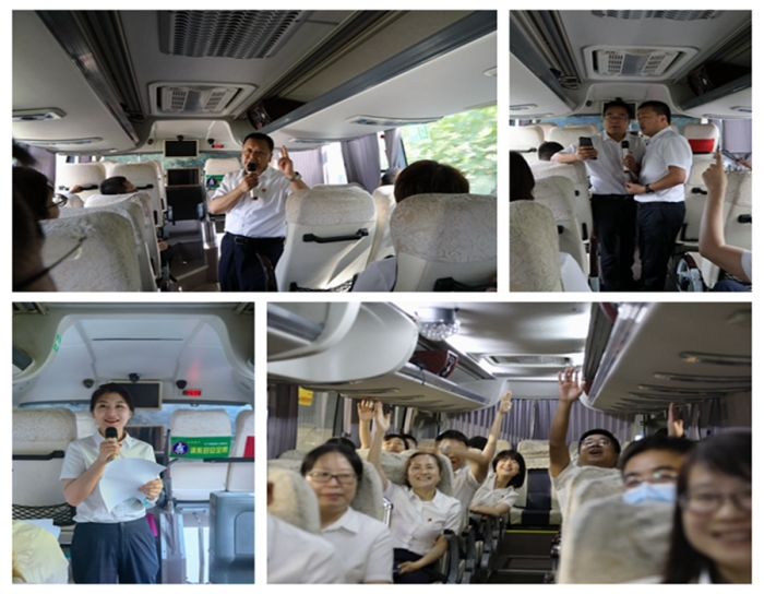 在前往鳳縣革命紀念館的路途中,嘹亮的紅色歌聲回蕩在群山之間,車廂內(nèi)大家熱情高漲,通過黨史知識問答、紅色歌曲傳唱、紅色詩詞朗誦等互動活動,一同重溫黨的歷史,表達對黨的熱愛和祝福。